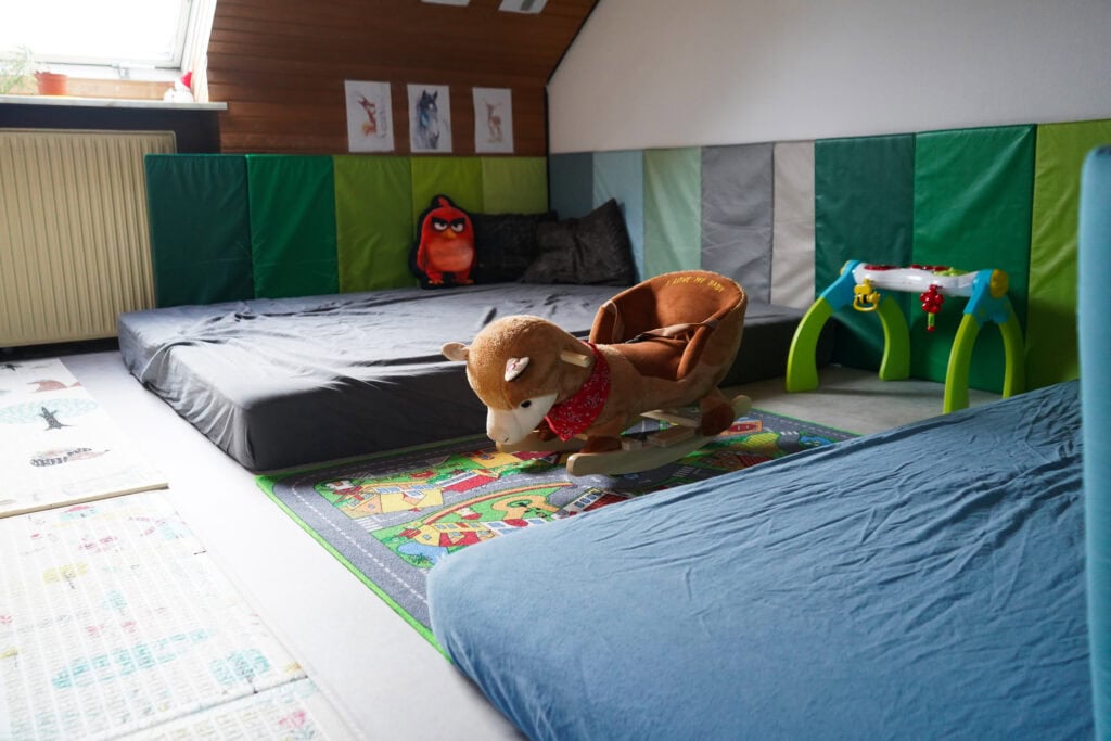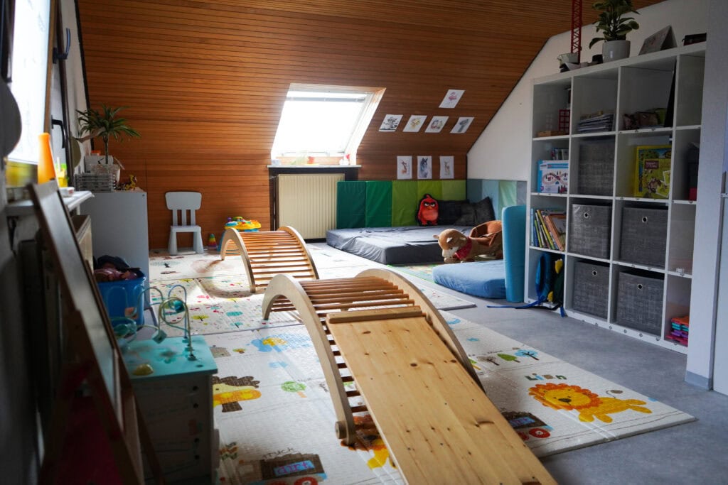 -Ein Spiel- und Bewegungsraum, der für die Tageskinder zum Austoben und Spielen genutzt wird.